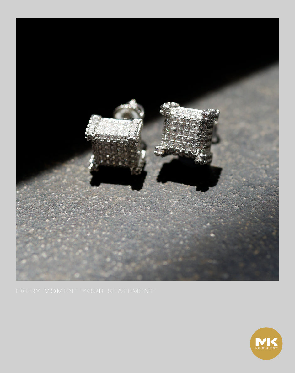 巴洛克鈦鋼銀鑲鋯石矩陣耳環