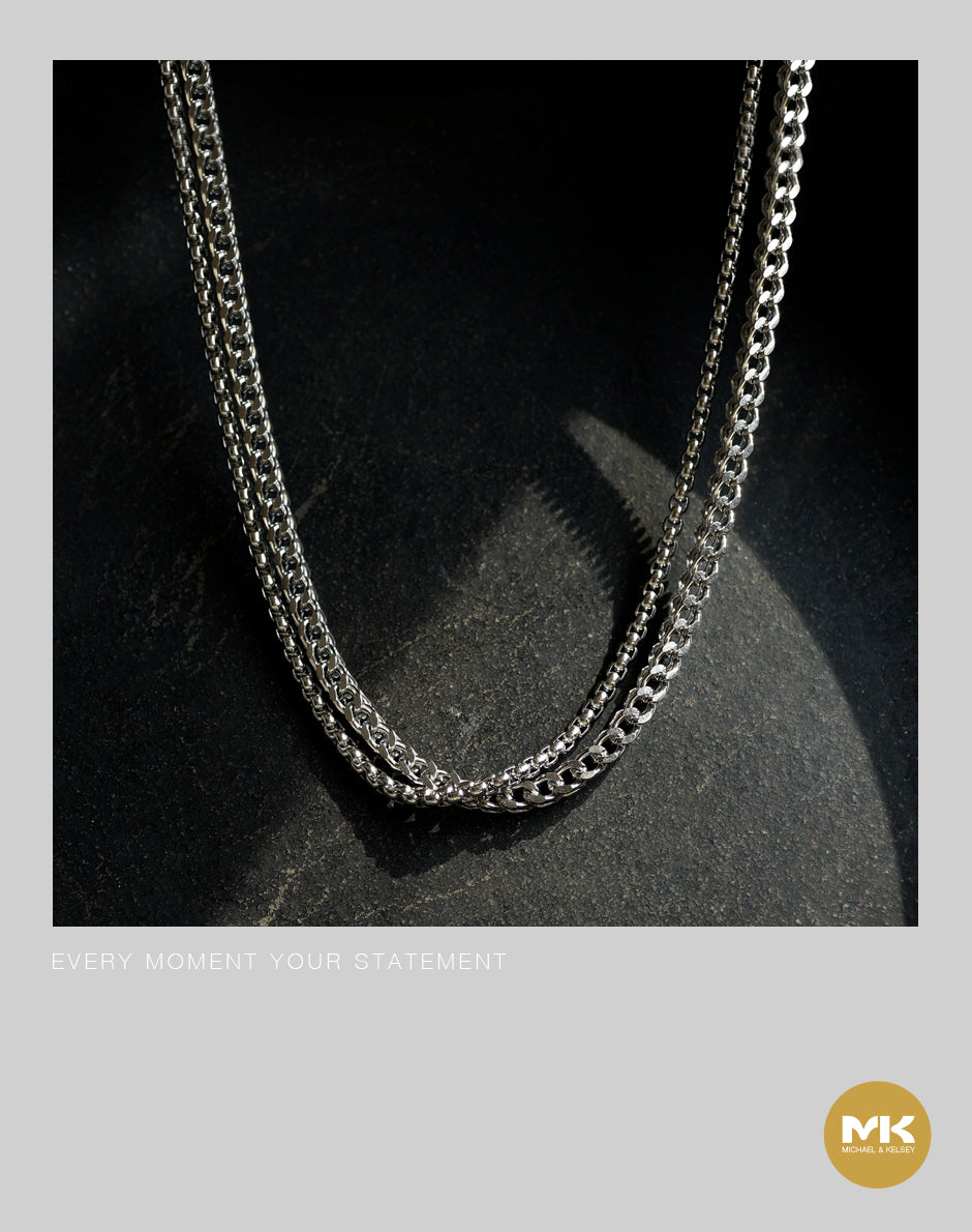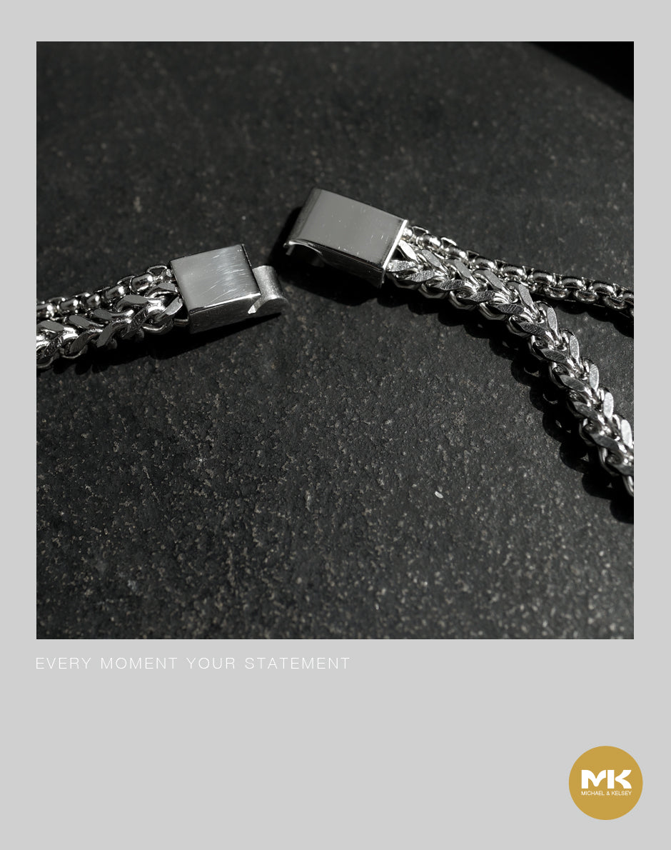 雙鏈平衡構成|主鏈為寬幅古巴鏈,副鏈以細節鏈條延展;結構呼應自我與世界的張力。