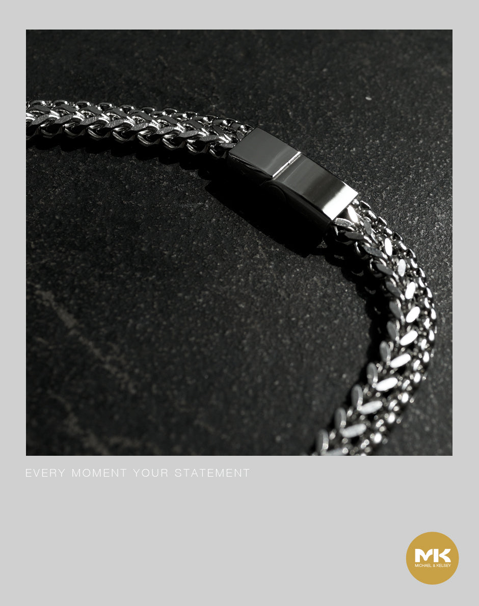粗鍊象徵力量與防衛,細鍊象徵理性與冷靜,兩者在交錯之間,構築出一種冷冽卻和諧的存在感。