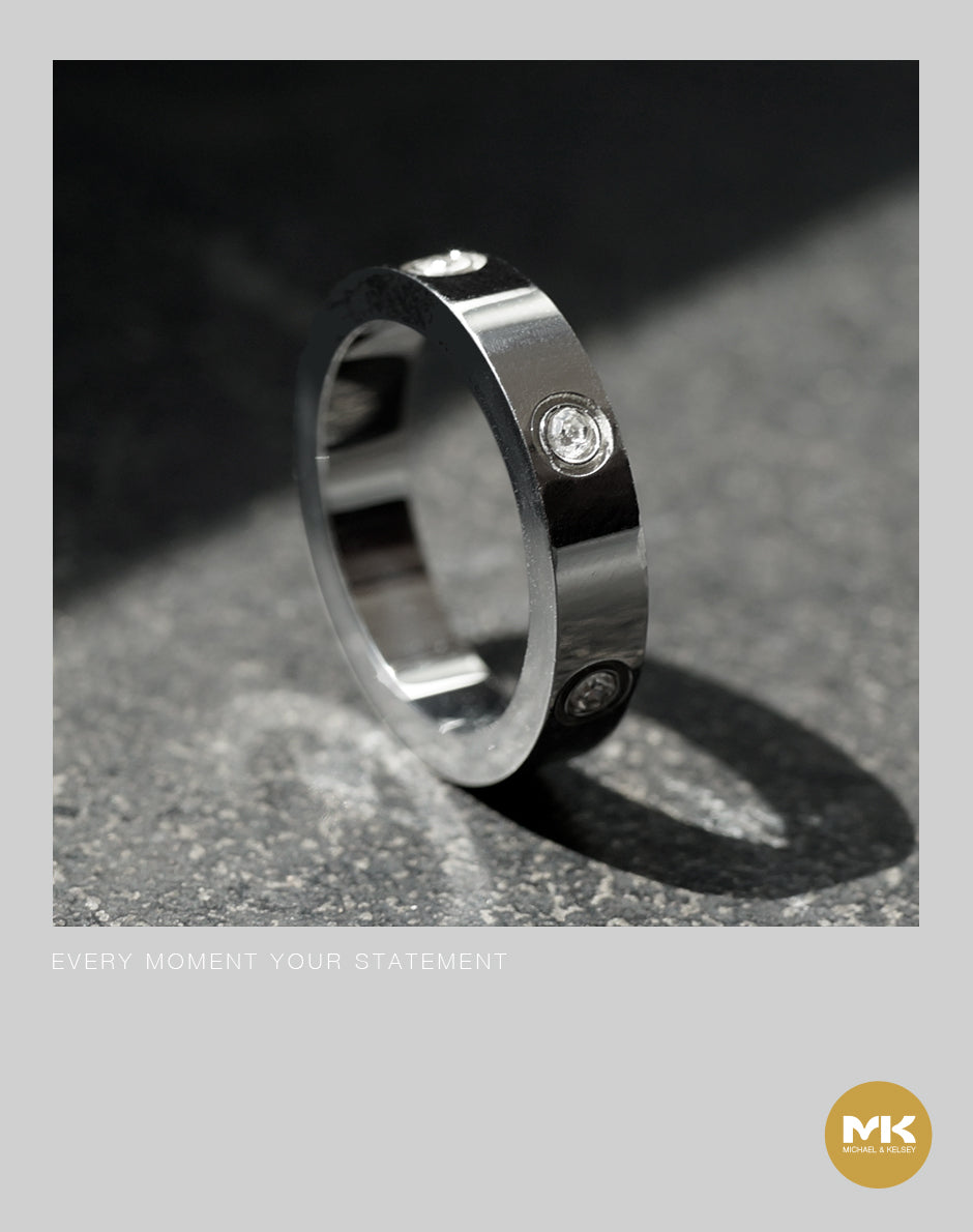 極簡輕奢鑲鑽戒指(銀)
