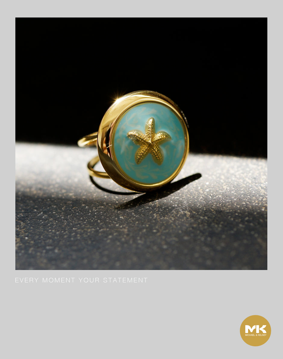 【商品名稱】海星金圓盤琺瑯滴油開口戒指