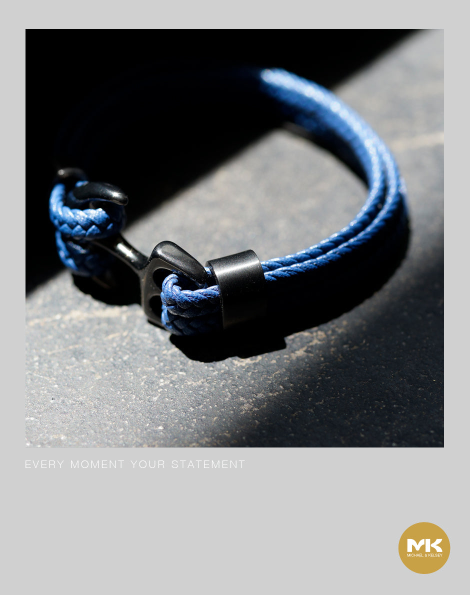 義大利牛皮霧黑船錨手環(藍/黑/棕)
