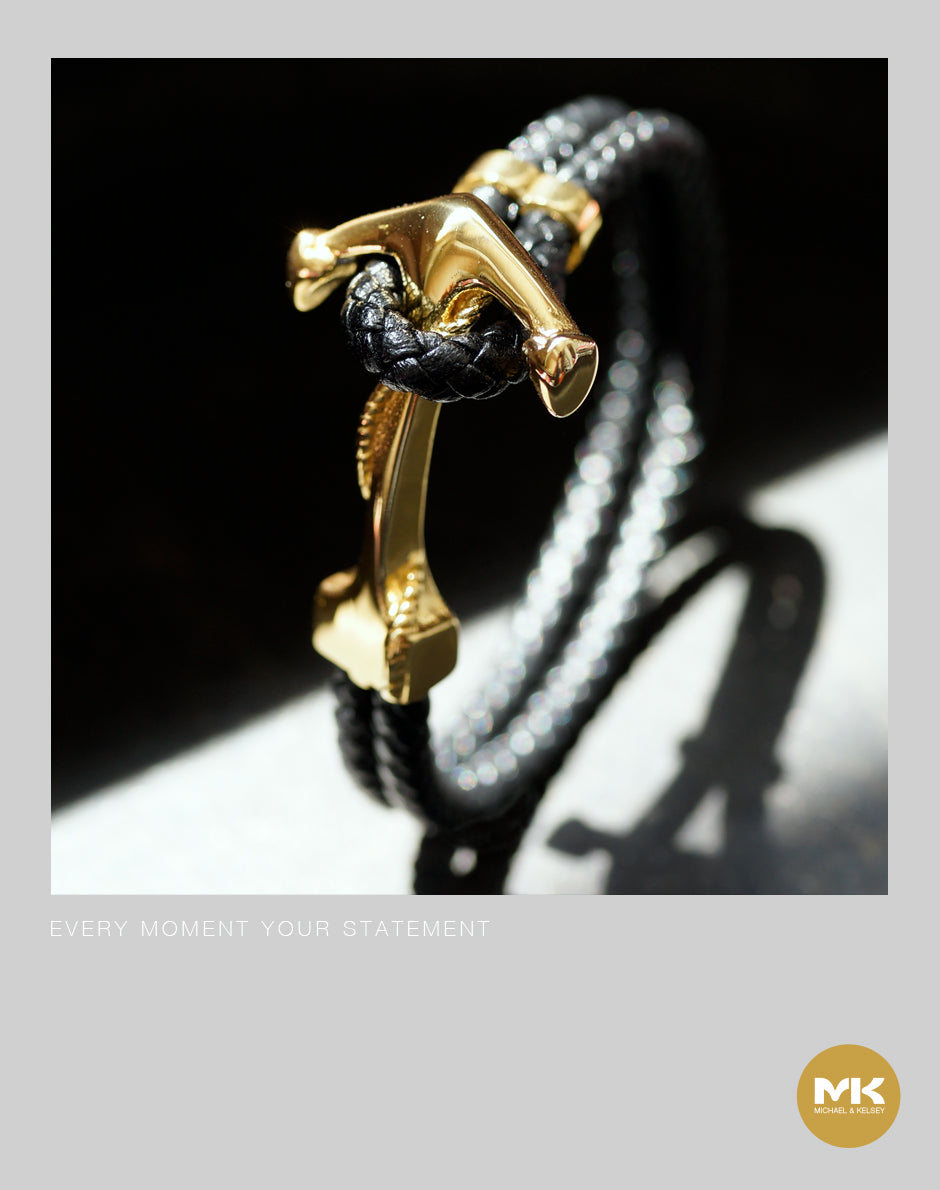 以船錨為靈感,鍍金飾件象徵信念與堅定,與深色真皮編織繩相扣,如同靈魂深處的掌舵者,低調卻有方向。無論身處何地,都能牢牢錨定你的風格信仰。
