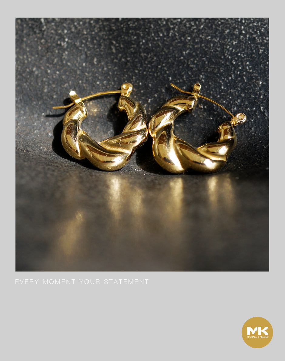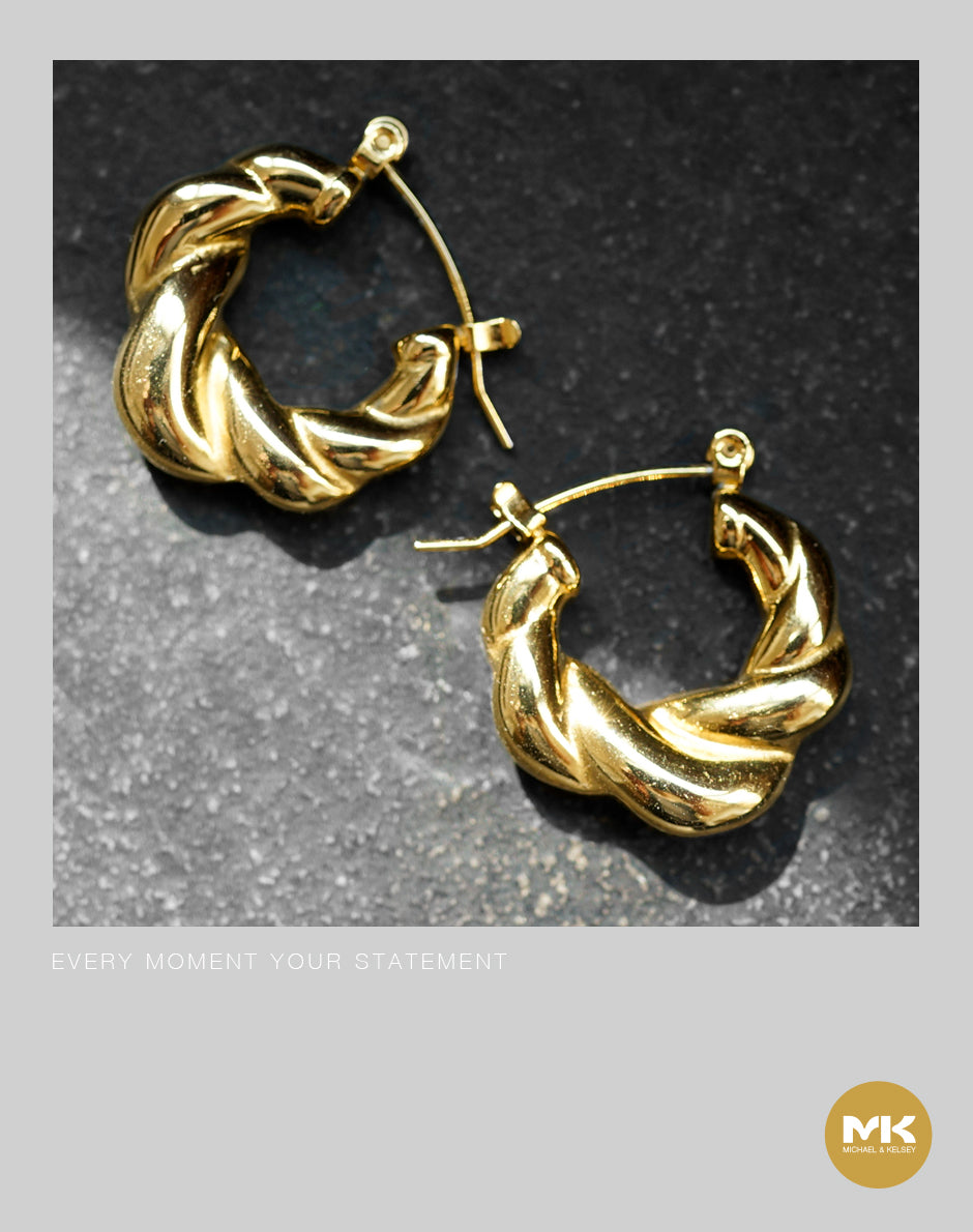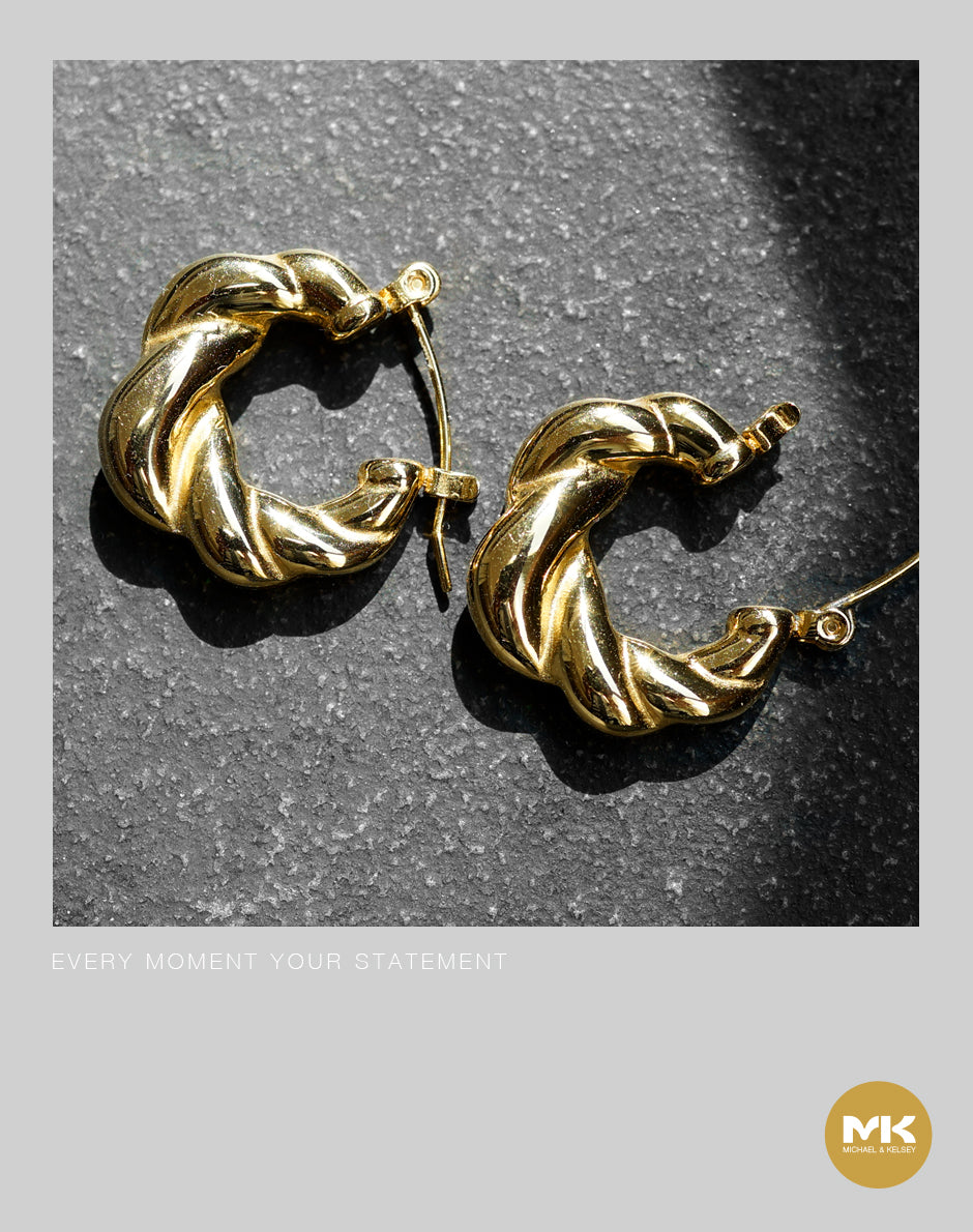 ✨ 材質:18K镀金優質鈦鋼 ; 尺寸:長:2cm, 寬:2cm (手工丈量)