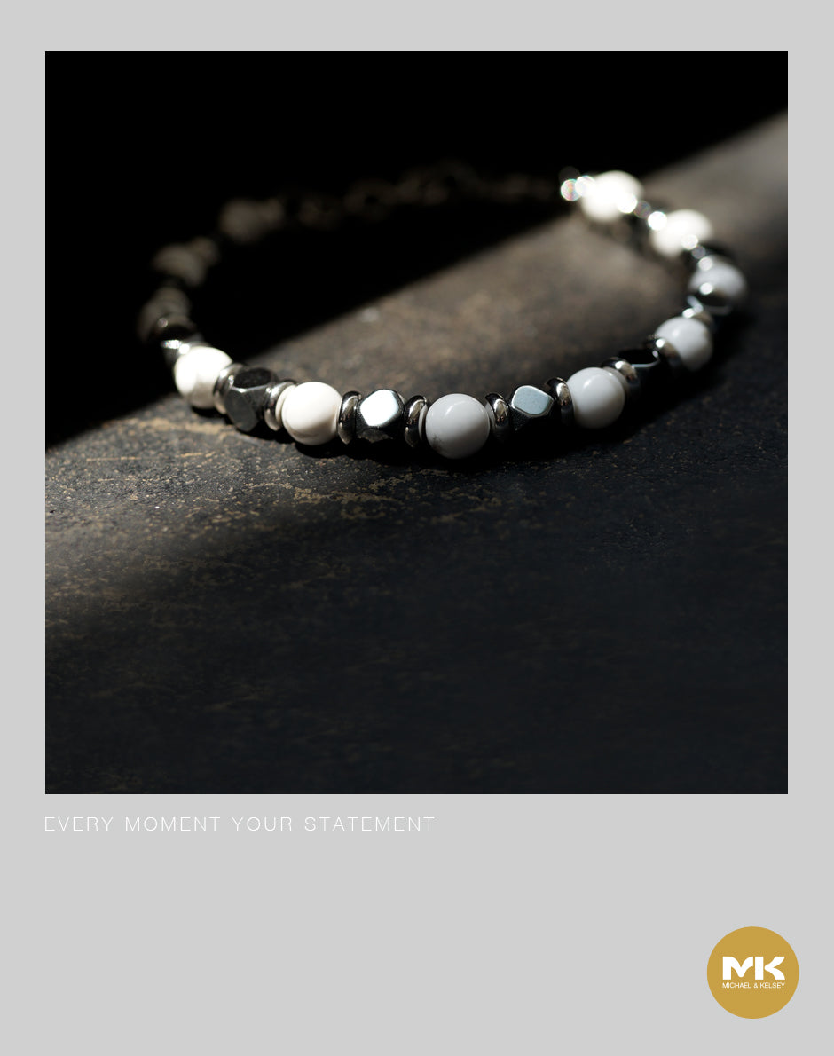 選用天然石結合18K鍍金與親膚鈦鋼,質地溫潤,低調卻不失光芒。